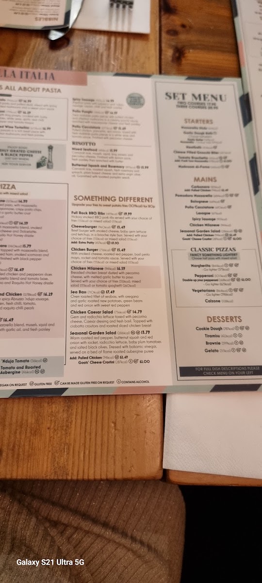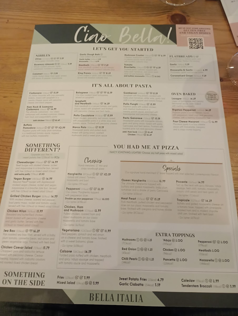 Bella Italia also caters to those with dietary needs, featuring gluten-free pasta and vegan cheese alternatives on request. Their kids' menu is thoughtfully portioned and includes fun options like Mini Pasta Bolognese and Pizza Margherita, accompanied by a drink and dessert.